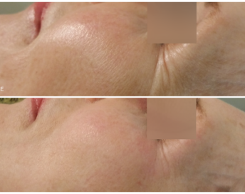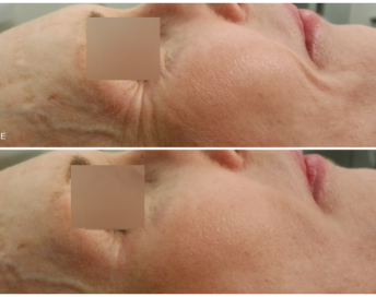 Before and immediately after treatment of vibradermabrasion to resurface her skin. This improved the unevenness of her skin tone, smoothed out fine lines/wrinkles and brightened the appearance of her face.